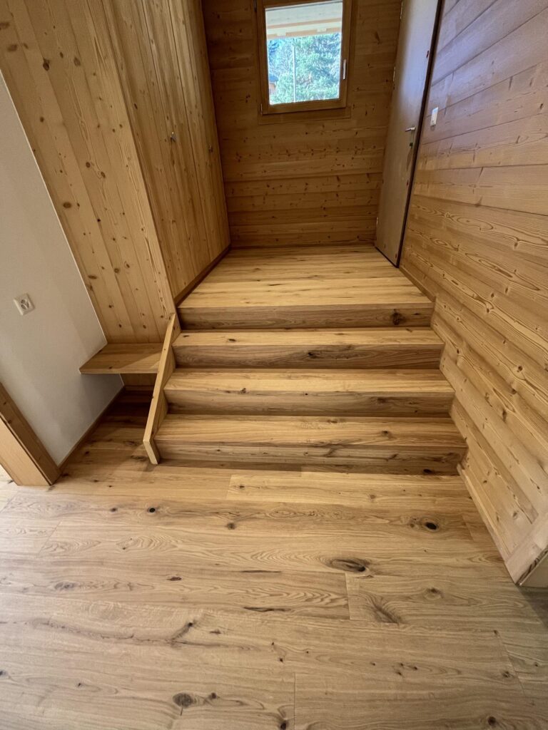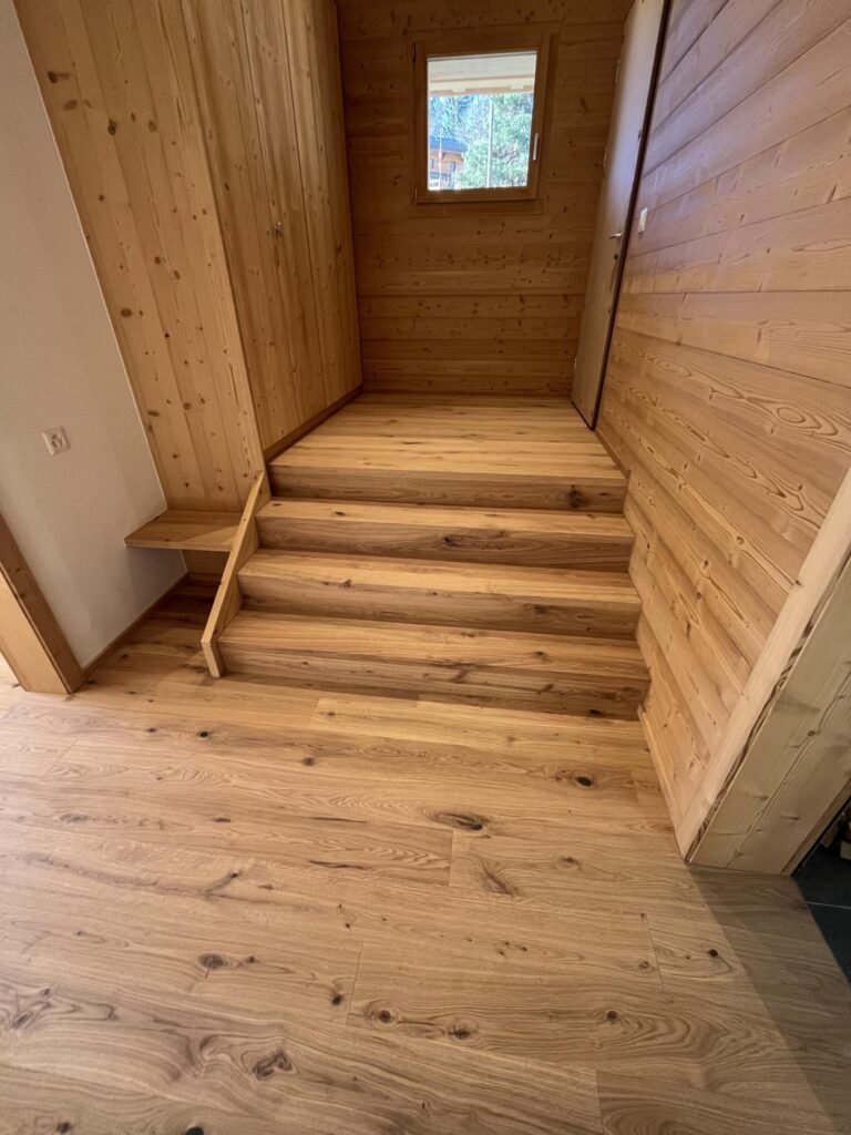Astuce : Si le sol environnant est déjà revêtu de parquet ou d’un autre matériau, veillez à coordonner la teinte et la finition pour un rendu uniforme et esthétique.